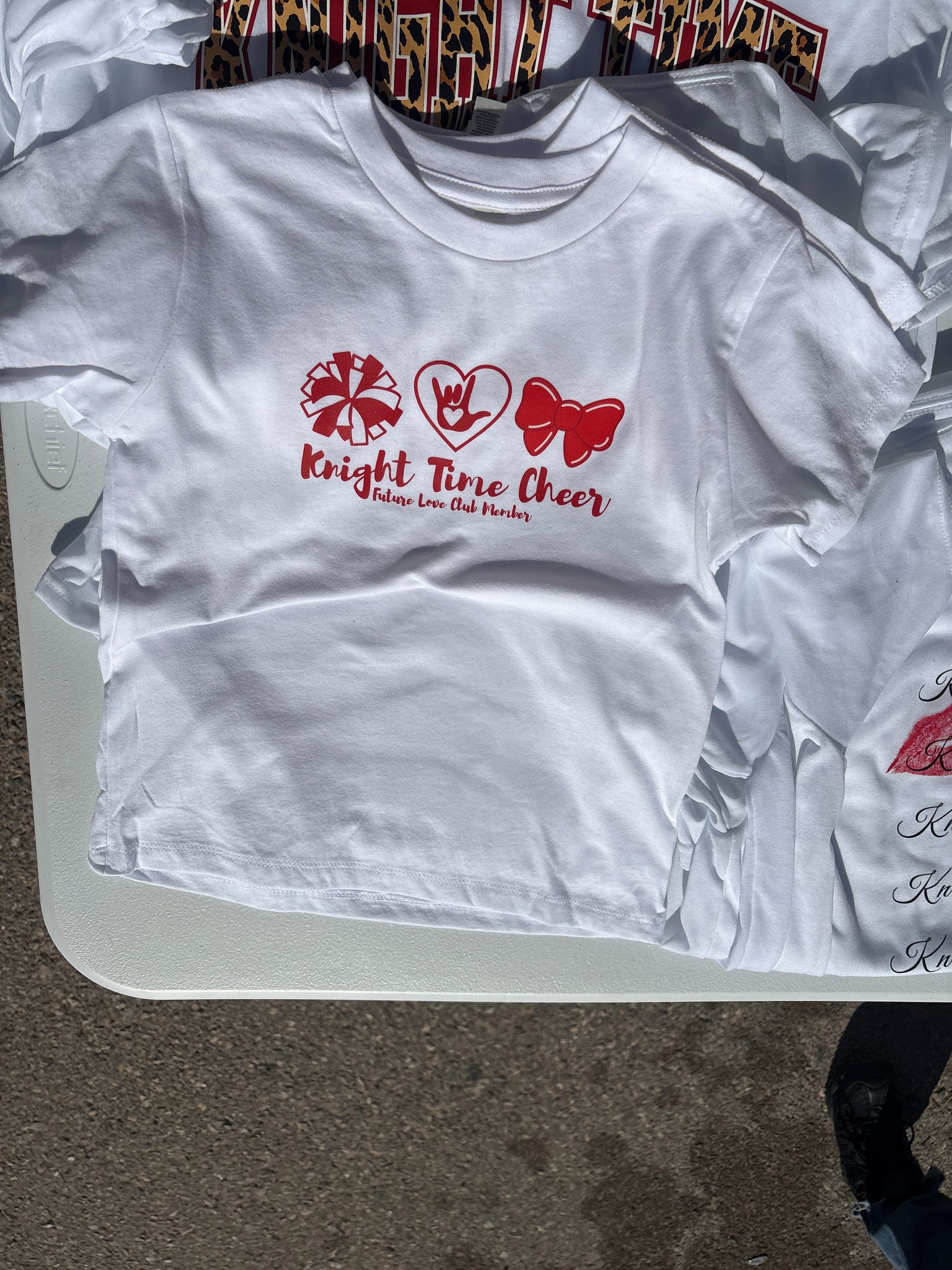 Future knight time cheer member tee or onesie. 100% cotton, sizes 5T - 6 months.